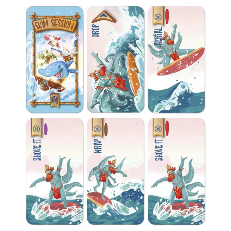 Em Skim Session, vocês estão fazendo uma sessão irada de skimboard, disputando ondas e manobras. Todos precisam usar seus melhores truques para decidir quem é o maioral, arriscando-se inclusive na maré profunda. Por isso, tome cuidado! Vocês jogadores podem levar uma vaca a qualquer momento! Mas fique tranquilo que os animais estão na praia para ajudar!
